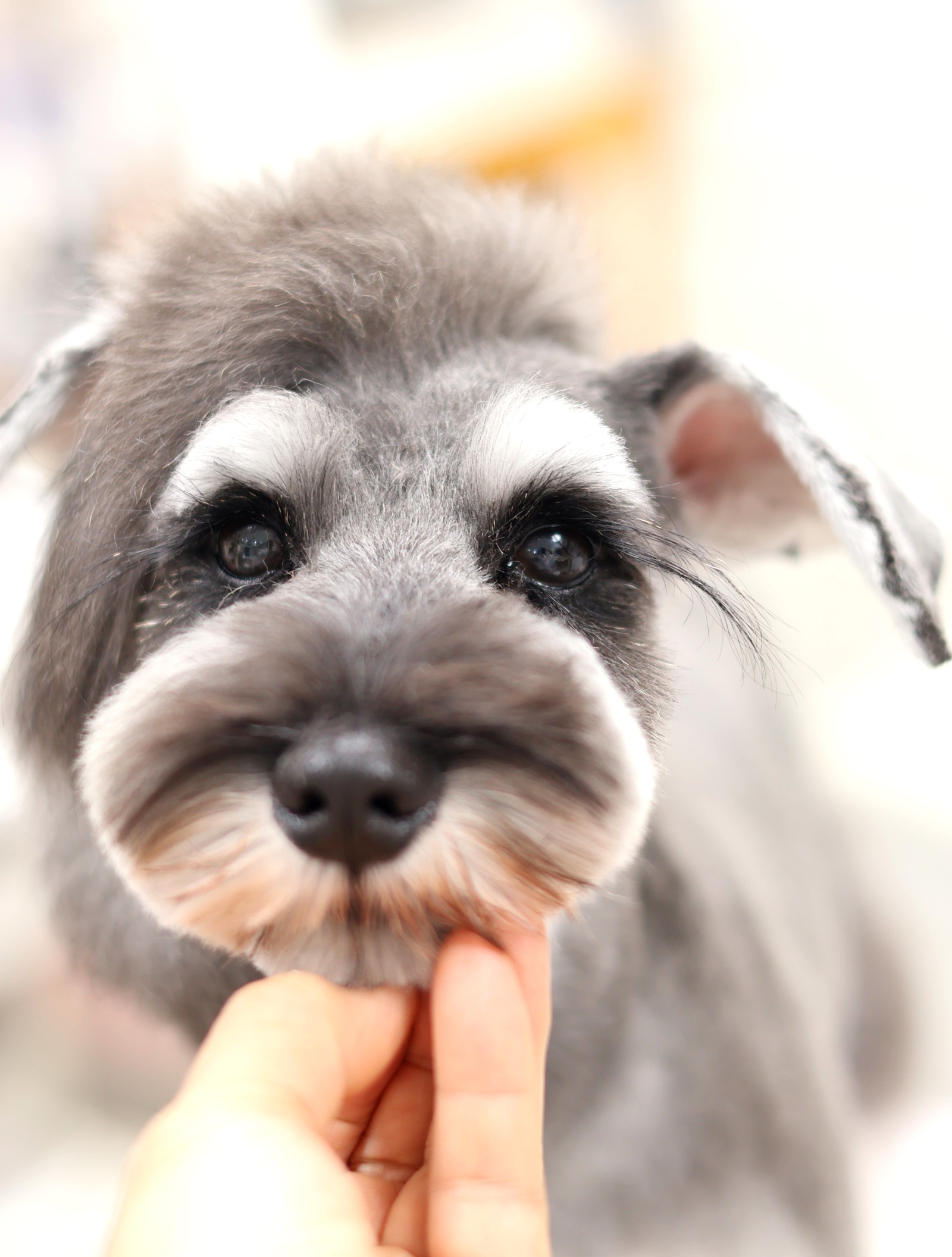 柔らかいシュナウザーの毛なので自然な感じにする為にスキハサミでシャギーさを出しました。 -