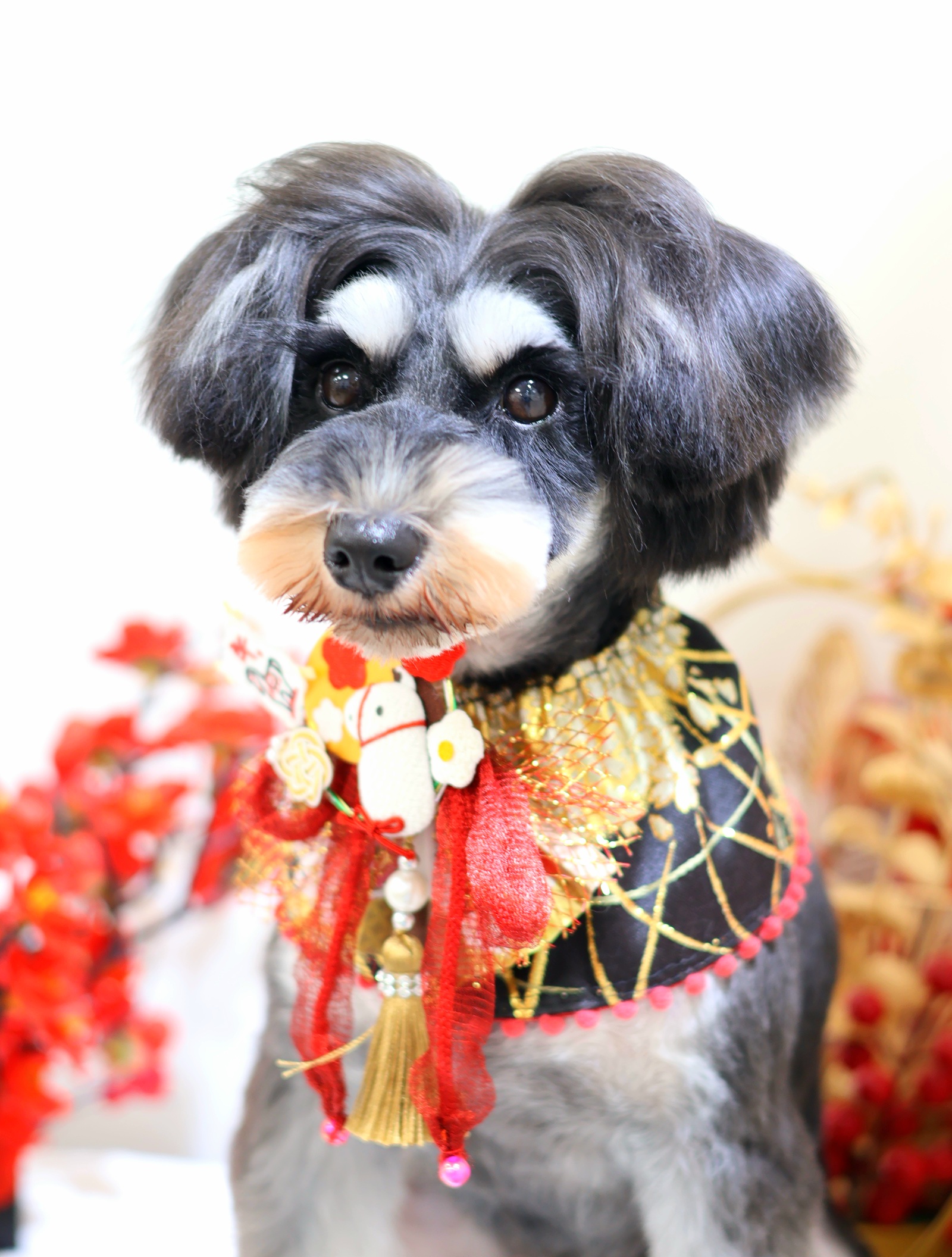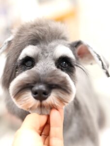 長いマズルを丸く可愛く見えるように慎重にカットしました。